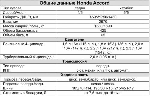 В целом Accord остается достаточно надежным автомобилем даже в нелегких условиях нашей эксплуатации и привлечет внимание автолюбителей, предпочитающих активный стиль езды. Эта машина дороже многих конкурентов и потребует немалых расходов на обслуживание.