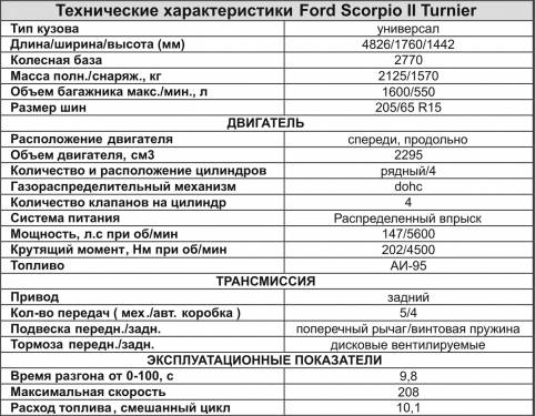 Последний Ford Scorpio II Turnier – неплохая альтернатива для тех, кто подыскивает подержанный автомобиль бизнес-класса. Он как нельзя лучше подойдет для семейных людей, которых в первую очередь интересует функциональность и вместительность машины, а в этом отношении Scorpio нет равных. К тому же автомобиль не имеет каких-либо серьезных недостатков и при своевременном обслуживании готов прослужить достаточно долго. Он наделен всеми необходимыми для такого ранга машин качествами и при этом недорого стоит, особенно на фоне конкурентов-однолеток (от $ 6,2 до $ 11 тыс.).