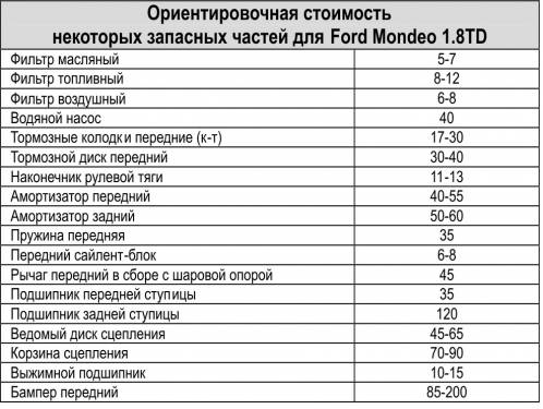 Еще одна неприятная особенность Mondeo – слабое сцепление. Оно может потребовать ремонта через 80-90 тыс. км пробега. Эта процедура связана со снятием коробки передач, и только за это ремонтникам придется заплатить 40-50 у.е. А какая сумма понадобится для покупки деталей сцепления, можно узнать из таблицы.