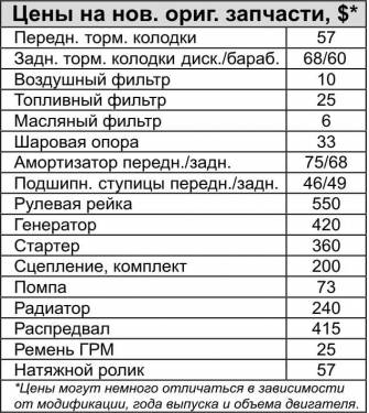 В передней независимой подвеске наименее долговечны опорные подшипники стоек, которые могут «пробежать» 50 – 60 тыс. км (запчасть – 29 у.е., работа – 40 у.е.). Остальные детали «передка» служат около 100 тыс. км и меняются отдельно друг от друга.