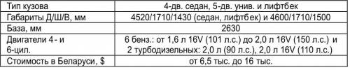 Один из наиболее распространенных на отечественном рынке автомобилей среднего класса. Привлекает автолюбителей относительно невысокой стоимостью как самой машины, так и ее обслуживания. Из недостатков следует отметить недолговечность задней многорычажной подвески и рулевого механизма.