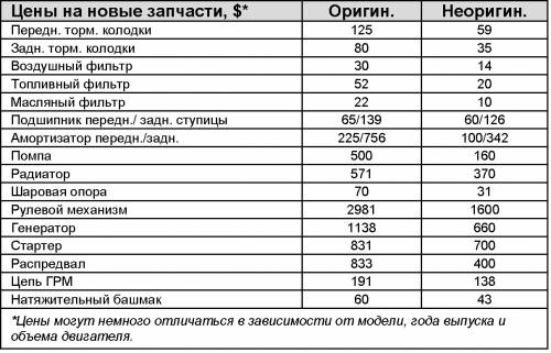 Тормозная система, как и положено автомобилю высшего класса, снабжена дисковыми тормозными механизмами всех колес и системой ABS. Проблем с ней почти не бывает, хотя случается преждевременный выход из строя тормозных дисков: когда в жару после активной езды с частыми торможениями холодная вода попадает на разогретые диски, они попросту коробятся (работа и запчасти – $ 118 за 1 шт.). Смена дисков, по рекомендации завода-изготовителя, должна производиться через каждые 65-75 тыс. км пробега. Что касается тормозных колодок, то при щадящих условиях эксплуатации их вполне хватает на 60 и более тысяч километров.