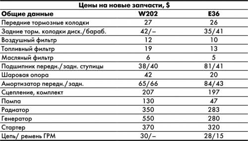 По отзывам специалистов, на наших дорогах более долговечна подвеска W202. К примеру, сайлент-блоки нижних рычагов могут прослужить до 200 тыс. км, а верхних, которые меняются вместе с шаровой опорой и рычагом, - около 150 тыс. км. Такой же срок службы и у сайлент-блоков задних рычагов. У Е36 “резинки” служат немного меньше - около 100 тыс. км. Однако подвеска “тройки” более практична в обслуживании - сайлент-блоки и “шаровые” меняются отдельно от рычагов. Накладной станет только замена передних подшипников, которые меняются вместе со ступицей.