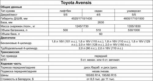 В целом Toyota Avensis занимает достойное место в своем классе, хотя этому автомобилю так и не удалось затмить собой знаменитую предшественницу Carina E, ставшую олицетворением японской надежности.