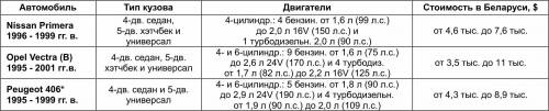 Как правило, в Беларуси официально продавались версии с бензиновыми двигателями объемом 1,8 и 2,0 л. Поэтому при покупке этих подержанных машин не лишним будет поинтересоваться биографией понравившегося экземпляра, просмотрев сервисную книжку, где должны фиксироваться все работы по его обслуживанию. Разумеется, лучше, чтобы в этой книжке стояли отметки фирменного сервисного центра.