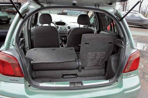 Багажник Yaris – один из наименьших среди одноклассников, вместе с тем, сдвинув на 150 мм вперед задние сиденья, «походный» объем можно увеличить на целых 100 л, получив 305 л!