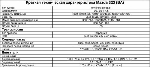 Пятое поколение «323-й» (ВА) представлено тремя версиями: ставшим наиболее популярным в Беларуси 5-дверным хэтчбеком под индексом F, 4-дверным седаном S и 3-дверным хэтч-беком С. На смену последней в 1996 году пришла ее рестайлинговая версия - P, выпускавшаяся и со следующим поколением «триста двадцать третьей». Кузова всех модификаций оцинкованы, и экземпляры, пораженные коррозией, встретить непросто. Наличие очагов «рыжей болезни» - серьезный повод проверить, не побывал ли автомобиль в аварии, после чего был некачественно отремонтирован. Кстати, «индивидуализация» этих машин создает сложности с поиском нужных запчастей при необходимости кузовного ремонта. Причем в самом худшем положении оказались владельцы наименее популярных «трехдверок» 323 С - детали к ним найти труднее, чем ко всем остальным модификациям.