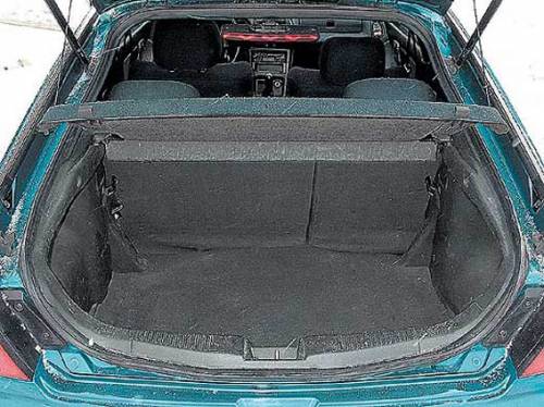 В 3-дверной версии 323 С проблемы создает крышка багажника. Верхняя ее половина стеклянная, а нижняя выполнена из затонированного оргстекла, в которое вмонтирован фонарь заднего хода и «противотуманка». Кроме того, между двумя половинками стекол на всех версиях «для красоты» установлено антикрыло. Вся эта «декорация», расположенная на уровне глаз водителя, как раз и перекрывает обзор.