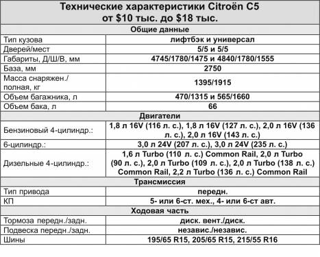 Подержанный Citroёn С5 – «гламурный транжира». Он заставляет своего хозяина тратить деньги, время от времени преподнося неприятные сюрпризы в виде вышедших из строя деталей. Сложная гидропневматическая подвеска этой модели, несмотря на свои достоинства, по-прежнему не отличается завидной надежностью. Прагматики никогда не примут «це-пятый», его способны оценить и простить за капризы только люди тонкой душевной организации, влюбленные в марку и дизайн машины. Впрочем, именно они и являются владельцами этой модели.