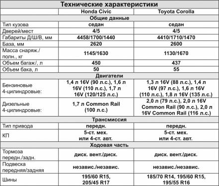 Для начала внесем ясность в происхождение машин. Эти японские модели не всегда являются «чистокровными» выходцами из Страны восходящего солнца. Седаны Honda Civic выпускались не только в Японии, но и в Турции, а седаны Toyota Corolla – только в Турции и США. Европейские версии Civic, составляющие львиную долю на нашем рынке, производились в Японии, а такие же версии Corolla – в Турции. Однако специалисты фирменных СТО уверяют, что место «рождения» существенно не повлияло на качество моделей.
