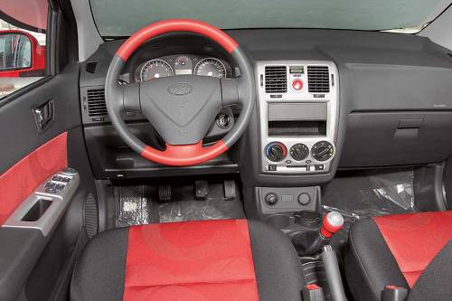 Салон пострестайлинговых Getz, особенно в версиях с двухцветной отделкой, довольно привлекателен. Пластик отделки твердый, но не скрипучий. Шумоизоляция – невысокого качества