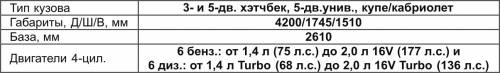 У нас официально продавались только бензиновые версии. Самые распространенные из них – атмосферные «16-клапанники» объемом 1,4; 1,6 и 2,0 л