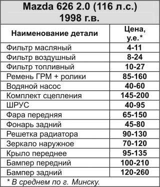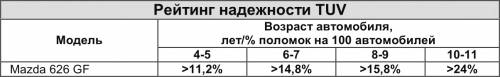 Неудачным считается турбодизельный мотор Mazda 626 GF, его основные проблемы - склонность к перегреву и пробою прокладки ГБЦ. Еще одним минусом этого двигателя является требовательность к качеству топлива. Собираясь покупать автомобиль с этим агрегатом, отложите как минимум 500 у.е. «на всякий пожарный случай» и помните, что профессионалы, разбирающиеся в японской технике Nippon Denso, в Беларуси на каждом углу не встречаются.