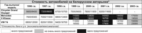 Например, Chrysler Grand Voyager. Учитывая завидное постоянство, с которым американцы занимают последние места в статистике TUV, то любовь белорусов к ним просто удивляет. Хотя такому трепетному отношению есть разумное объяснение – низкая стоимость ввозимых к нам из США Chrysler Grand Voyager. Кроме низкой цены у этого “американца” есть и другие достоинства – например, большой и комфортабельный салон. Это придает Grand Voyager как бы “люксовости”, что является большим плюсом и отличает минивэн от более скромных конкурентов. Но пушистые коврики и мягкие сиденья не могут скрыть посредственное качество автомобиля.