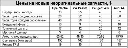 При всех своих «грузовых« достоинствах у 406 Break не очень удачная задняя многорычажная подвеска, которая на наших дорогах служит меньше, чем у остальных героев обзора (30 – 60 тыс. км), что плохо для универсала, в котором «задок» при перевозке багажа наиболее нагружен. Схожие замечания можно сделать и Vectra Caravan. Правда, ее задняя многорычажная подвеска держится дольше, чем у «француза», но в обслуживании она обходится недешево. Каждые 60 тыс. км приходится менять шаровые втулки рычагов (запчасти – $ 111, работа $ 25) и втулки стабилизатора поперечной устойчивости (запчасти – $ 8, работа $ 20). Задний подшипник меняется только вместе со ступицей (даже неоригинальная деталь – свыше $ 100). Переплачивать за A4 Avant стоит только тем автолюбителям, для которых престиж и имидж куда более важны, чем практичность, экономия и удобство. Судите сами – эта «немка» дороже всех в обслуживании, ее салон – не самый просторный и комфортабельный, а багажное отделение – наименьшее.