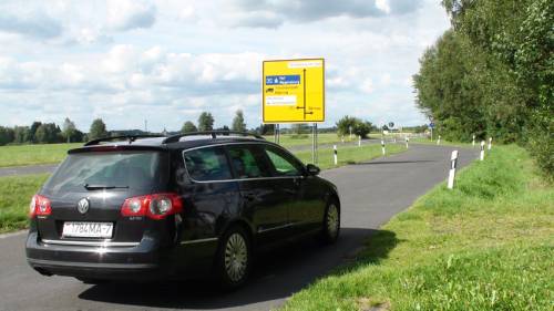Пейзаж за окном обычный для Польши – ремонты дорог, оживленные трассы…..вот незадача – портится погода. Впереди Вроцлав, который проезжаем за 20 минут, а после него: тучи заволокли небо и накрапывающий дождик сменился ливнем. Мы сворачиваем после выезда с города на настоящий автобан А4, по которому нужно проехать около 40 километров по направлению к Германии. Похоже, в этой части Польши стратегическим направлениям дорог уделяют гораздо больше внимания, чем в восточной, ближе к нашей РБ. А ведь еще 10 лет назад из Вроцлава до Германии можно было проехать лишь по брусчатке. Стратегическое партнерство делает свое дело!