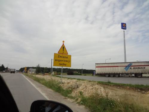 Первым делом подкрепились в известном всем туристам-белорусам ресторанчике «U Zagrodze», или баре «Pajero» что по левой стороне в 15-20 километрах от границы по направлению на Варшаву. К слову, обед из двух шикарных салатов и огромной тарелки мяса с гарниром (можно порцию смело брать на двоих), напитков (кому – пиво, кому – кола) обошелся в 35 злотых (курс был 3.9/1евро). Прекрасная погода, сытые и довольные, мы мчимся в обход Варшавы, свернув с трассы номер 2 на 19 за Бяло-Подляской. Вечером в 19:00 в польской столице делать нечего - пробки. Впрочем, как повезет. В итоге, решили не рисковать и поехали по менее известным дорогам через Коцк, Демблин, Радом к Томашуву-Мазовецкому, где прямо возле трассы дымит парами завод по выпуску известной белорусам плитки «Апочно». Там 48-я дорога из Радома соединяется с трассой Е67/8 ведущей из Варшавы на Вроцлав, которая сейчас активно ремонтируется. Кстати, деньги Евросоюза в Польше используются по назначению, это конкретно о том, что касается дорог. Ремонты и стройки плавно смещаются от месяца к месяцу и дорожные «артерии» приобретают мировые стандарты. Но!!!