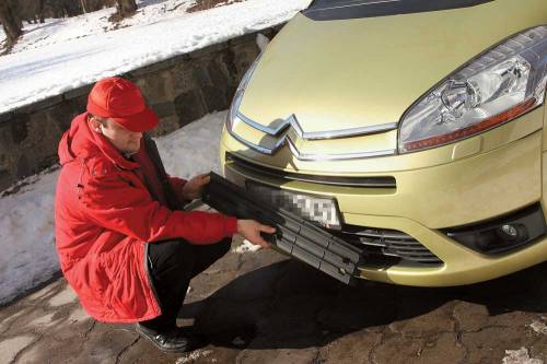 Для ускорения прогрева мотора нужно установить на решетку радиатора спецзаглушку (предусмотрена в некоторых иномарках), частично перекрывающую доступ холодного воздуха