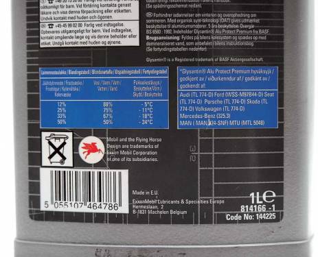 Допуски автопроизводителей, пропорции смешивания можно найти на этикетках емкостей с жидкостью. Концентрат замерзает при -13°С