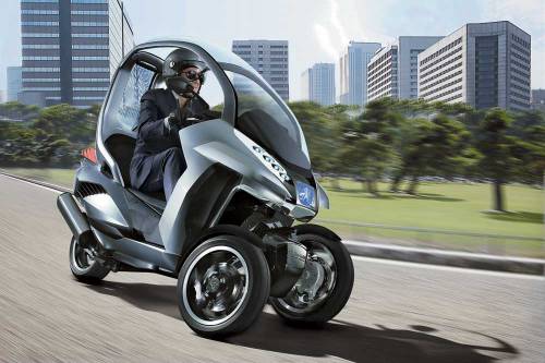 На 2011-й намечена премьера туристического мотоцикла Honda, в котором используют элементы серийного гибрида Insight. А французы из Peugeot сделали гибридный скутер HYmotion3 Compressor, показанный на прошлогоднем Парижском автосалоне. Трехколесное транспортное средство с крышей имеет оригинальную конструкцию: заднее колесо приводится в движение 1-цилиндровым бензиновым мотором объемом 125 см куб. (20 л.с.), а пара передних – двумя электромоторами (по 3 кВт каждый).