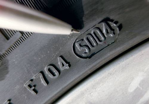 Зная возраст шины, можно сравнить его с возрастом автомобиля. Дата выпуска определяется по номеру DOT. Данная произведена на 50-й неделе 2004 года |