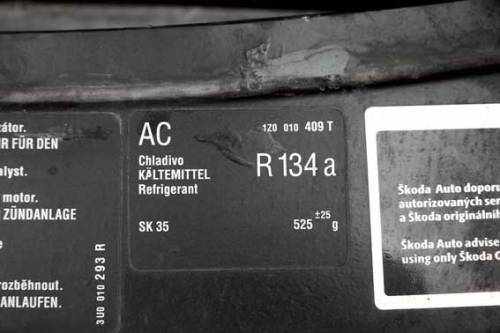 Количество рабочего газа фреона и его тип указаны на наклейке в моторном отсеке |