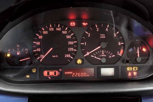 В предыдущих поколениях моделей BMW (на фото) межсервисный интервал определялся по косвенным признакам с помощью специальной программы, которая зашита в блок управления двигателем. Она учитывает количество запусков мотора, время прогрева до рабочей температуры и режимы работы (на каких оборотах, при каких нагрузках, число и интенсивность разгонов). На основании этого электроника делает вывод, когда следует менять масло. Алгоритм расчета базируется на параметрах более ранних исследований инженеров BMW, в которых контролировалось состояние масла при разных режимах работы двигателя. В новых моделях BMW (например, E65, E90) межсервисный пробег определяется немного иначе.