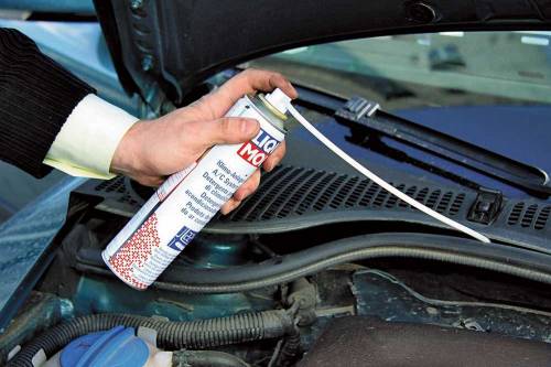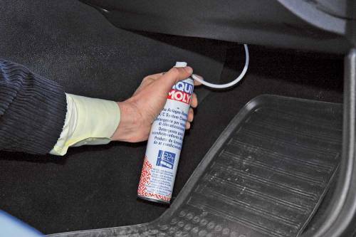 5. Вставить распылитель в место установки фильтра или в наружный воздухозаборник, и распылить средство.