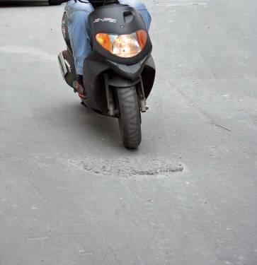 Строительный бум отражается на скутеристах в самых неожиданных проявлениях. Кучки, которыми щедро метят свой путь «бетономешалки», опасны не только в полужидком, но и в застывшем состоянии. Убрать такие неровности можно только со слоем асфальта. Часто-густо в бетоне имеются гравий и другие мелкие включения, делающие подобные «мины» еще и крайне скользкими.