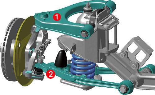 Принцип работы рычага подвески прост, как во времена Архимеда: один его конец шарнирно укреплен на кузове (раме), второй на ступице колеса (мосту). Если подвеска независимая, в нижний (реже в верхний) рычаг конструктивно могут упираться упругий элемент и демпфер (пружина, амортизатор, стабилизатор).