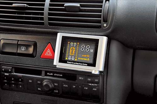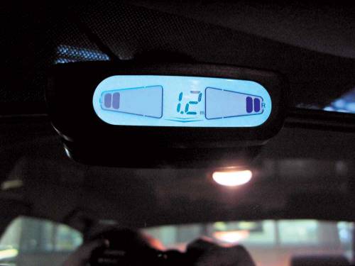 Такие приборы не совсем удачны, поскольку в процессе парковки водители смотрят назад, по сторонам, в зеркала, но не прямо перед собой. Более удобны системы с индикаторами, расположенными над задним стеклом и отражающимися в салонном зеркале заднего вида или монтируемыми на торпедо вблизи наружных зеркал. Некоторые системы предусматривают фиксацию индикатора на салонном зеркале заднего вида. Оригинальный вариант – световая шкала, встроенная в салонное зеркало, которая включается только при активировании системы.