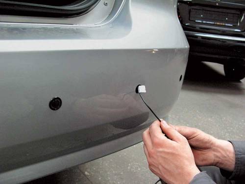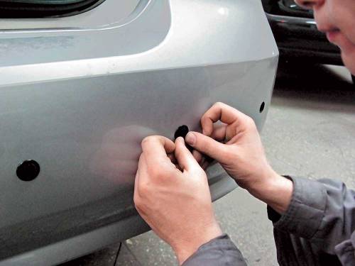 Для установки датчиков в бампере вырезаются отверстия с помощью специальной фрезы