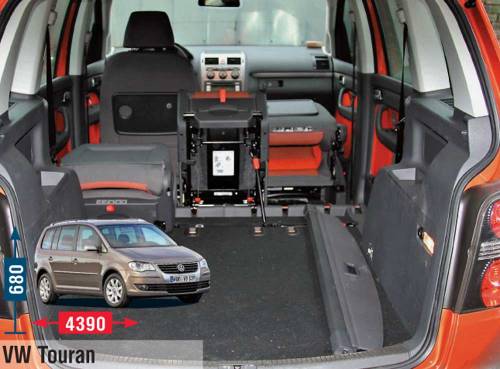 У остальных конкурентов глубина багажников около 1,5 м. Хотя некоторые минивэны имеют складывающееся сиденье переднего пассажира, что заметно удлиняет погрузочный объем (например, у VW Touran – до 2,6 м). По погрузочной высоте лидируют исключительно европейские модели. Японцам же следует еще поработать над этим параметром.