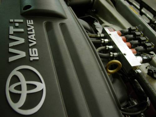 Variable Valve Timing intelligent - плавное изменение фазы газораспределения в соответствии с условиями работы двигателя достигается путем поворота распределительного вала впускных клапанов относительно вала выпускных в диапазоне 40-60° (по углу поворота коленвала). В результате изменяется момент начала открытия впускных клапанов и величина времени "перекрытия". Все очень просто, но и сложнее. Ротор заставляет распредвал менять угол атаки на клапаны. Когда блок управления подает сигнал на электромагнит, он, перепуская масло в том или ином направлении, через плунжер перемещает основной золотник. Когда двигатель заглушен, золотник перемещается пружиной для установления максимального угла задержки. Чтобы сразу после запуска не возникало ударов в механизме, когда давление в масляной магистрали еще недостаточное для эффективного управления VVT-i, ротор соединяется с корпусом стопорным штифтом (затем штифт отжимается давлением масла). Двигатели Toyota не отличаются тем бешеным задором, свойственным моторам Honda, но данная система обеспечивает неплохую топливную экономичность. Упpавление клапанами VVT-i сложнее, чем VTEC, из-за использования разных кулачков при разных оборотах, системы регулировки теплового зазора и распределения давления масла. В итоге даже мощные двигатели с VVT/VVT-i заметно пpоигpывают двигателям с DOHC VTEC на низких и сpедних обоpотах.