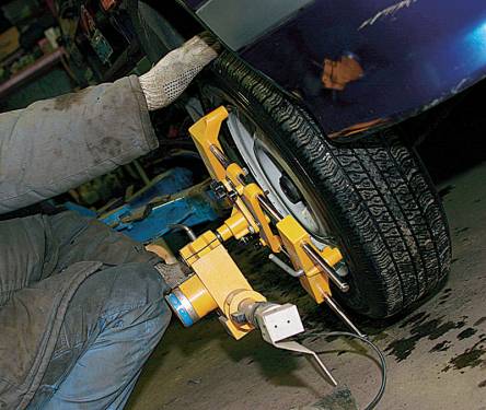 В соответствии с технологией технического обслуживания и ремонта работа должна начинаться с проверки технического состояния автомобиля, а именно свободного хода рулевого колеса, радиального и осевого биения дисков колес, деталей и узлов подвески, люфта в подшипниках ступиц, давления воздуха в шинах. Говоря проще, «развальщик» должен поднять машину на подъемнике и осмотреть ее снизу, подергать за тяги, за колеса, взять манометр и проверить, а при необходимости довести до нормы давление воздуха в шинах. Это естественно, так как регулировать углы на автомобиле с изношенной подвеской и спущенными шинами бессмысленно. Поэтому логично будет сначала отремонтировать машину, а затем регулировать углы.