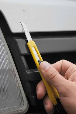 Выступающий бугорок краски аккуратно срезают канцелярским ножом