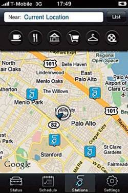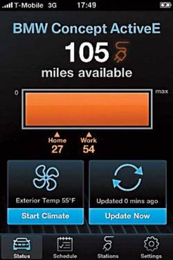 На экран коммуникатора электромобиля BMW ActiveE выводятся данные о зарядке батарей, карта и другая информация