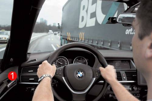 Еще одна полезная система – Narrow-passage Assistant призвана помочь водителю на узких участках дороги и предотвратить столкновение в ограниченном пространстве. Для этого опытный образец внедорожника BMW X5 оснастили лазерным сканером пространства, ультразвуковыми датчиками, системой контроля над дорожной разметкой и проектором для лобового стекла. На основании полученных от них данных система сообщает водителю о боковых помехах на пути – графическая информация о потенциальных препятствиях проектируется на лобовое стекло. Это касается параллельно идущего транспорта, желтой разметки или неподвижных препятствий на парковке. Система отличается тем, что она будет препятствовать повороту в сторону помехи, т. е. наезду на объект. Это осуществляется изменением усилия на рулевом колесе с помощью электроусилителя, а также принудительным замедлением машины вплоть до полной остановки.