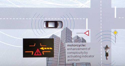 Система общается с другими ТС и предупреждает о возможных помехах на ближайшем перекрестке