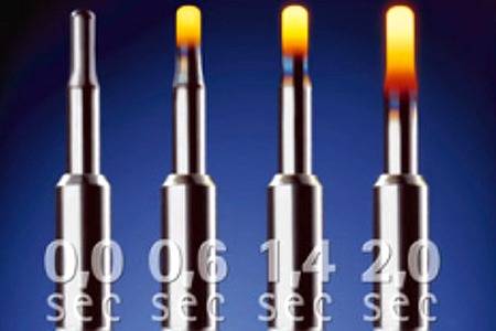 Уже через 2 секунды после включения штифт свечи раскаляется докрасна |