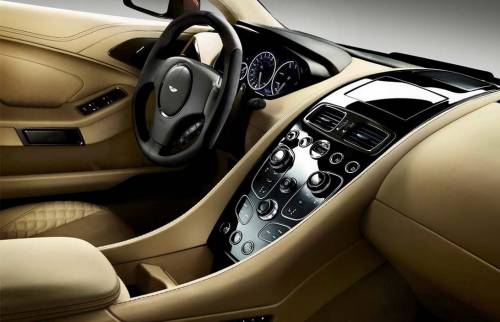Интерьер Vanquish выполнен в футуристическом стиле. Клавиши управления микроклиматом и аудиосистемой стали сенсорными. Панель приборов сохранила фирменный стиль, но оцифровка выполнена новым шрифтом. Также улучшена графика и удобство пользования двумя дисплеями.
