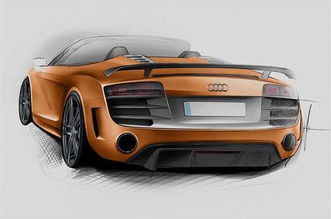 В июне текущего года в рамках марафона "24 часа Ле-Мана" компания Audi представит облегченную и самую мощную модификацию открытого суперкара R8 Spyder, которая получит название GT. Широкой публике этот автомобиль, чьи первые официальные изображения были распространены в понедельник, 11 апреля, будет представлен осенью на моторшоу во Франкфурте.