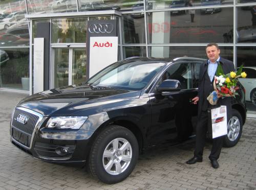 «Юбилейным» автомобилем стал кроссовер Audi Q5 с мотором 2.0 TFSI (211 л.с.) в цвете «черный перламутр». Кстати, это самая популярная модель Audi в Беларуси в 2010 и 2011 годах. Счастливый обладатель 500-го Audi – житель города Минска. Примечательно, что это его первый новый личный автомобиль Audi.