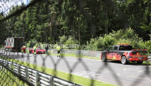 В результате пострадала вся левая часть машины. В конце июня Audi R8 e-tron установило рекорд круга Нюрбургринга среди серийных электрокаров. Купе проехало трек за 8 минут 9,099 секунды со снятым ограничителем максимальной скорости, а с ограничением на 200 километрах в час, которое будет использоваться на товарных машинах, пилот преодолел 20,8-километровую дистанцию за 8 минут 26,096 секунды.