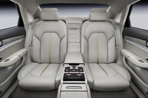 Интерьер обновленного Audi A8 по-прежнему привлекает элегантными линиями и внушительным пространством. Передние сиденья могут быть оснащены функциями вентиляции и массажа. В качестве опции также доступны задние индивидуальные сиденья с электрорегулировкой, а для длиннобазной версии A8 L предлагается многофункциональная задняя центральная консоль с кожаной отделкой и первоклассное заднее кресло с вентиляцией, массажем и подставкой для ног, оснащенной сервоприводом.