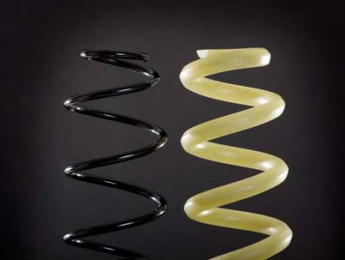 В основе структуры новых пружин лежат непрерывные переплетенные между собой стекловолокна с вкраплениями эпоксидной смолы. Сверху наносится еще один слой тонких волокон толщиной в несколько миллиметров, перекрещивающихся под 45-градусным углом. Полученный материал запекается при температуре более ста градусов. По словам производителя, такие пружины является более износостойким, не поддаются коррозии и невосприимчивы к химикатам, содержащимся в средствах для чистки колесных дисков.