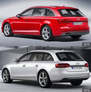 Новика получила видоизмененную светодиодную оптику, другую решетку радиатора и иные фонари. A4 в кузове универсал отличается удлиненным задним свесом, рейлингами на крыше и видоизмененной оптикой.