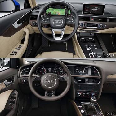 Изначально новая Audi A4 должна была появиться в конце 2014 года, но компания отложила премьеру автомобиля, так как директор по развитию немецкой марки Ульрих Хакенберг оказался недоволен наработками дизайнеров и инженеров Audi.