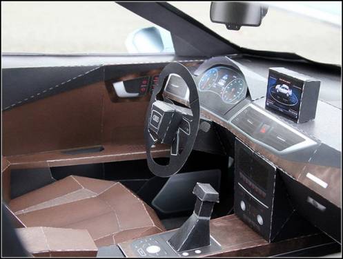 В итоге бумажный Audi A7 был представлен на одном из автомобильных салонов одновременно с презентацией там своего полноразмерного рабочего прототипа. Причем степень его детализации мало чем уступала оригиналу.