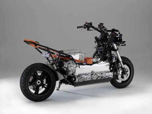 Прогрессивные характеристики достигнуты отчасти благодаря инновационной компоновке. Вместо традиционной рамы узлы мопеда - маятник, задняя рамка, вилка с рулем закреплены на алюминиевом корпусе батарейного блока. Электромотор закреплен за батарейным блоком и через зубчатый ремень вращает шкив, приводящий в действие цепь заднего колеса с механизмом рекуперации, который увеличивает запас хода скутера от 10% до 20%.